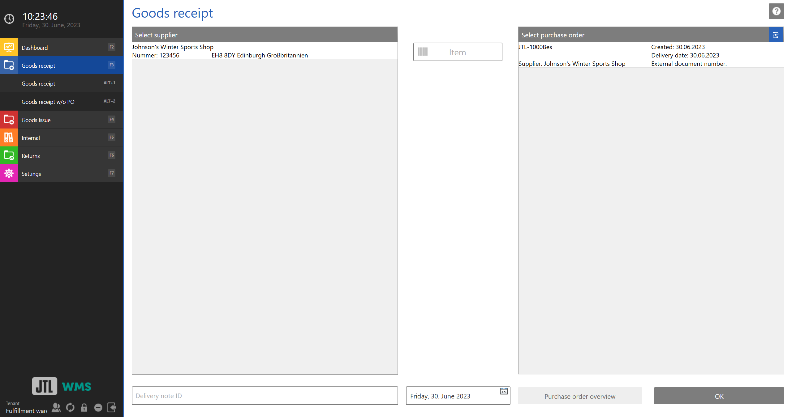 As a fulfilment service provider, you will receive an announcement from merchants using the JTL-Fulfillment Network as soon as goods are on their way to you. You can inspect the arrived goods and post them to your warehouse using JTL-Wawi and JTL-WMS processes. You can also use all other warehouse processes such as the inventory and adjustment postings.