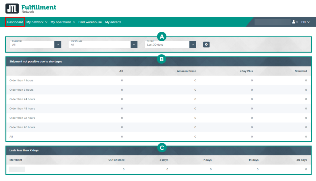On this page, you will find a detailed description of the Dashboard. You can access the dashboard in JTL-FFN via the Dashboard button.