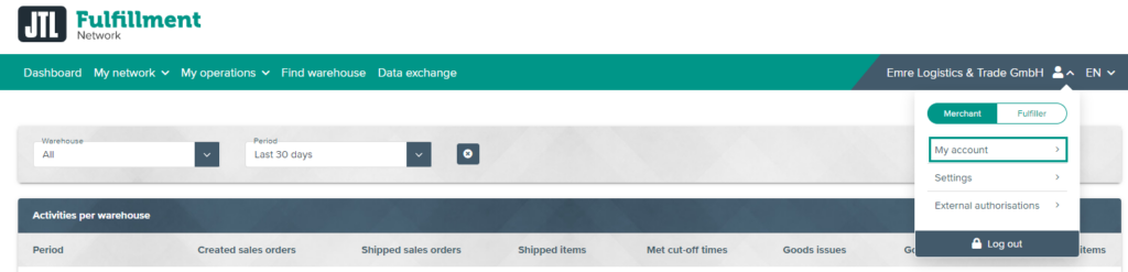 - Click on the link and log in to the JTL-Fulfillment Network.