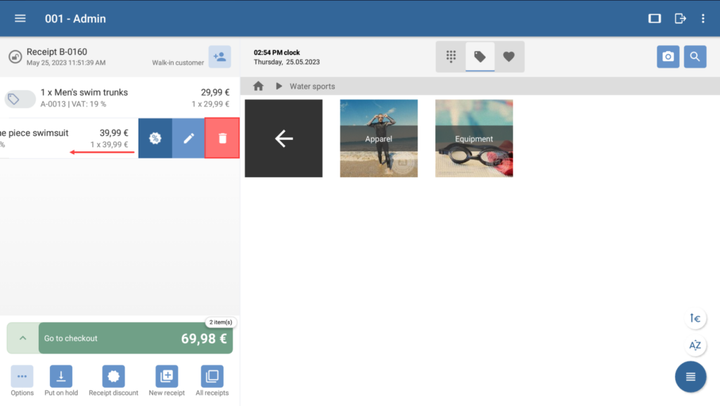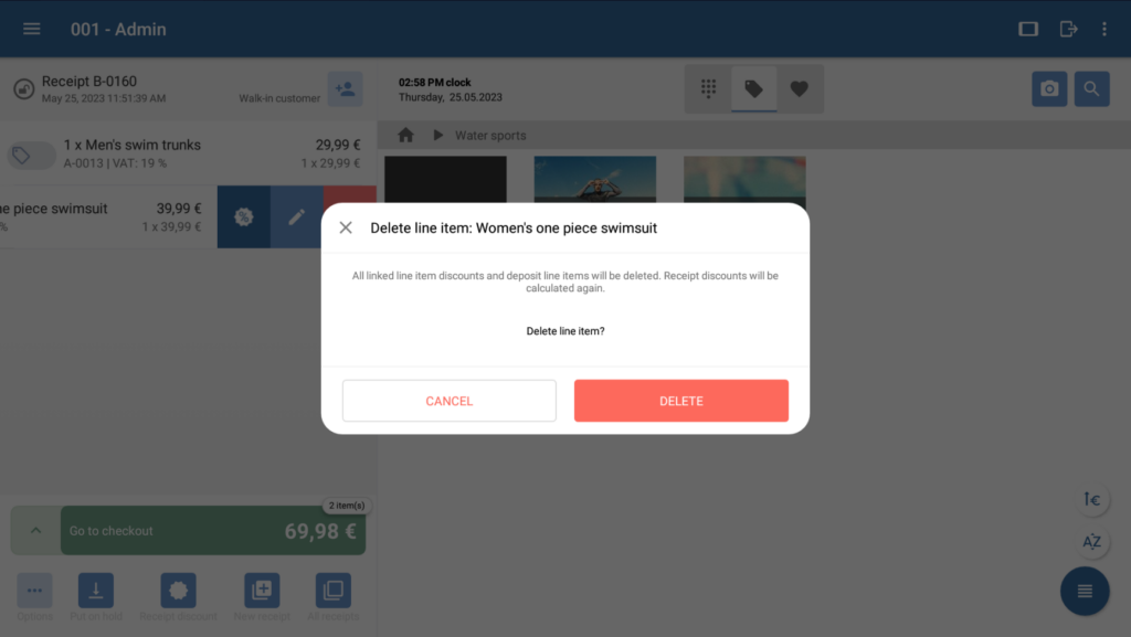 - Confirm the confirmation request with Delete. The line item will then be removed from the receipt.