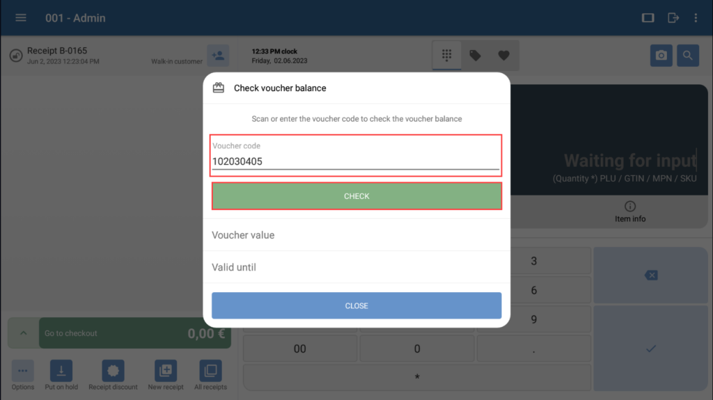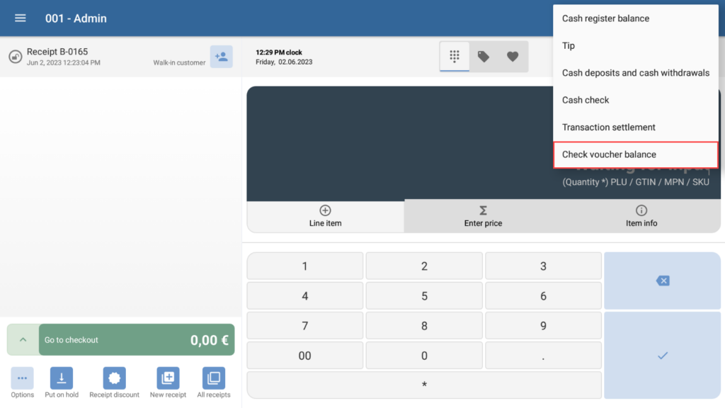 You can check the value of a voucher once you are in the cash register overview. However, you can also check the value if you have created a new receipt and are already in the checkout process.