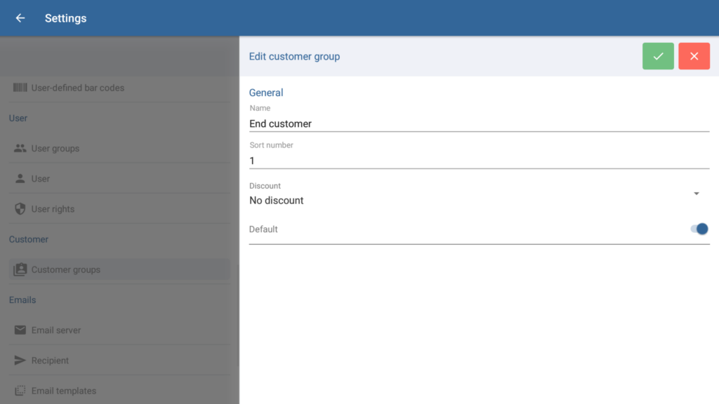 Deleting customer groups: To delete a customer group, hold your finger down on the customer group until the confirmation request opens. Confirm with Yes.