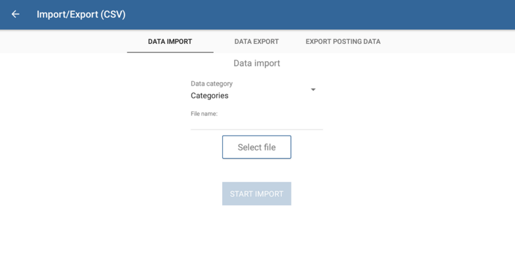 - In the menu of JTL-POS, go to the menu item Import/Export (CSV). You are forwarded to the tab Data import.