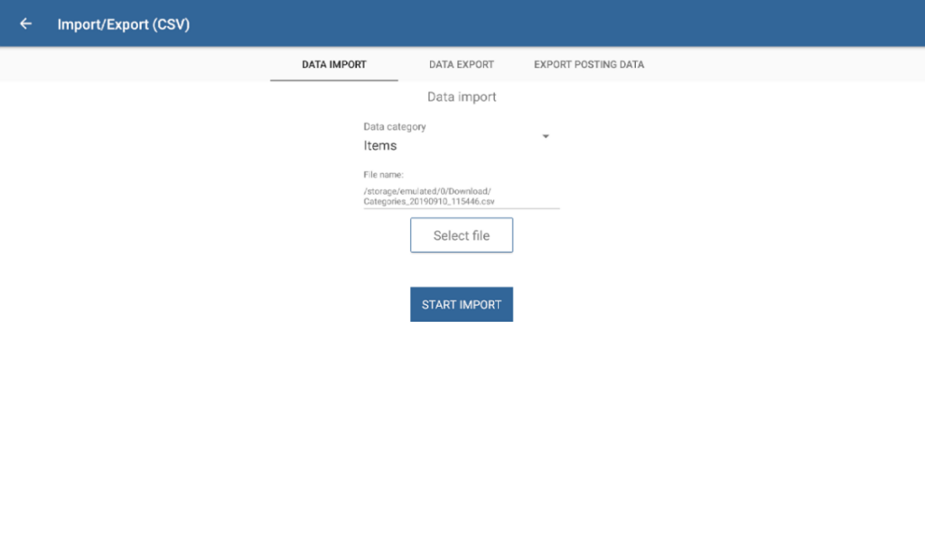 - Tap Start import. When the import was successful, a success message appears. The imported files are now present in JTL-POS.