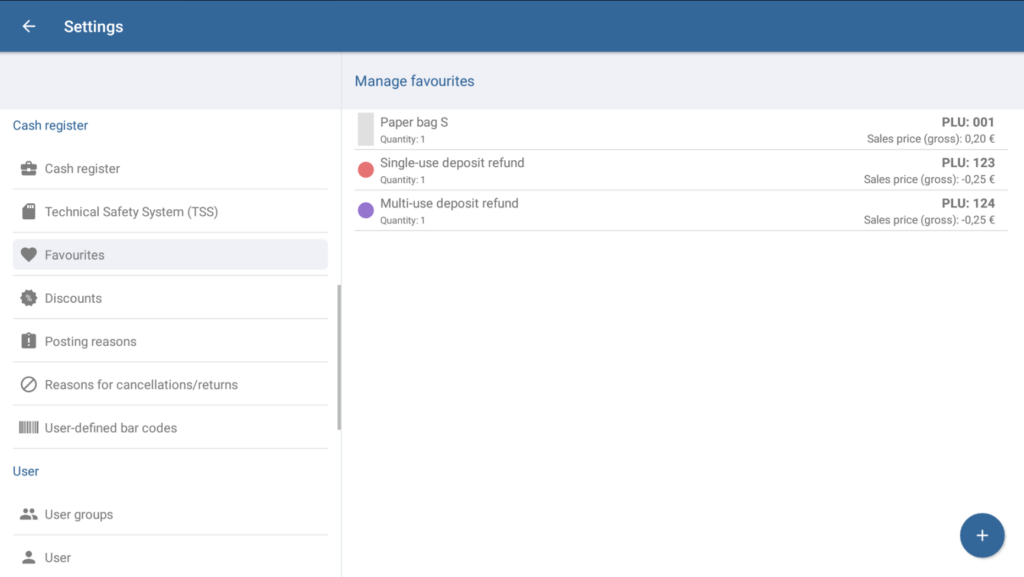 In the cashier view of JTL-POS you can use the quick access function to view your favourites. All favourites are displayed in this dialogue box. You can then add them to the current receipt with a single tap.