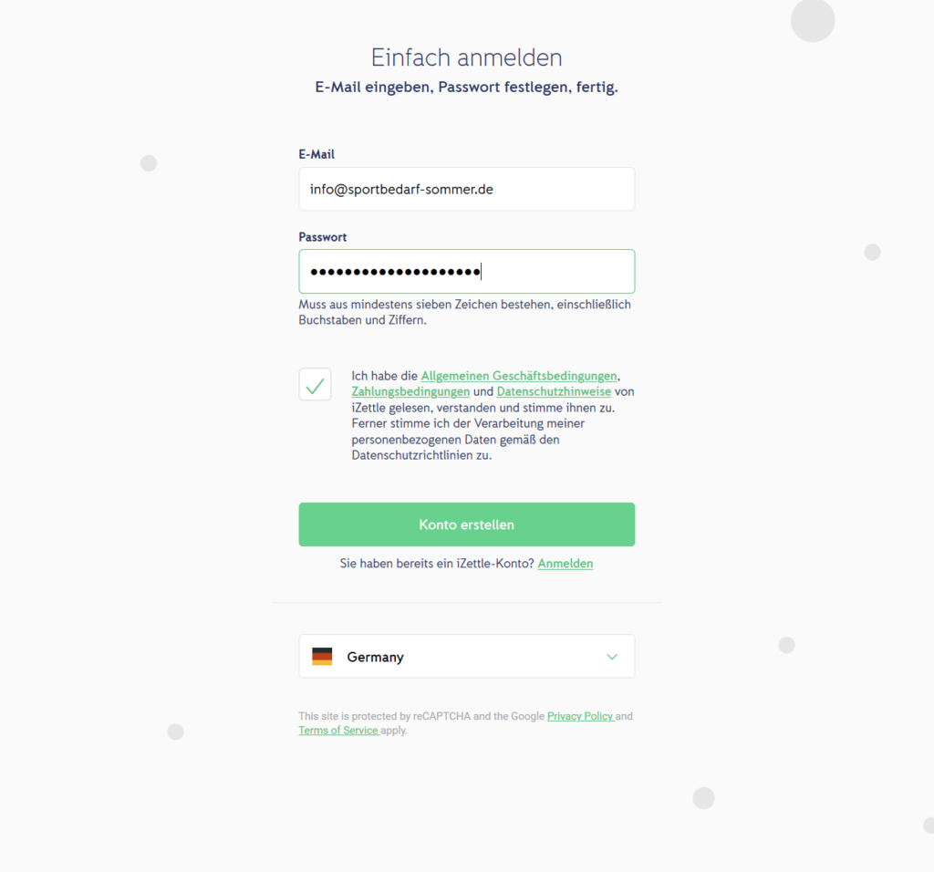 - Save the payment method. The Zettle by PayPal login dialogue box will open. Enter your Zettle by PayPal account data. Then select Anmelden (Log in).