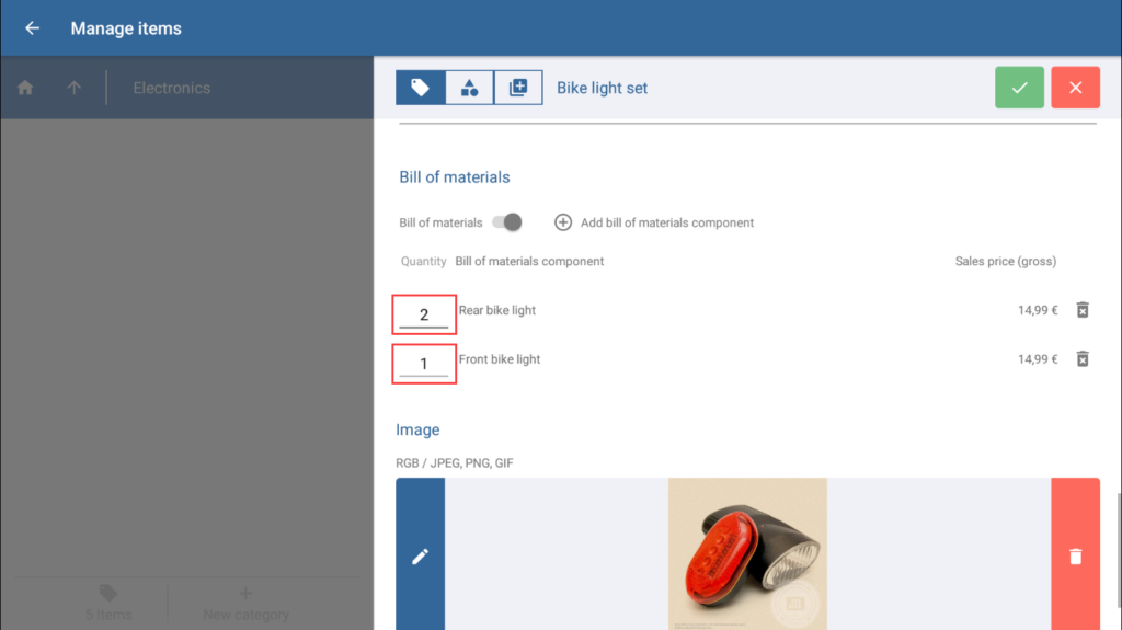 - Tap the ✓ button to save the BOM. You can now find the BOM in the item overviews and easily identify it by its icon.