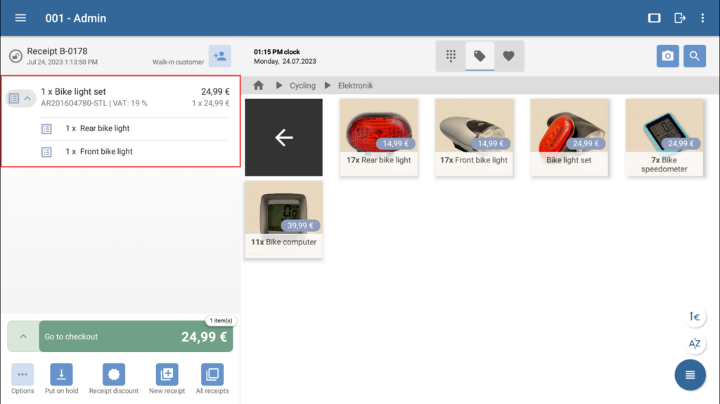 You sell sets of items that contain several individual items at a special price. You would like to create these item sets in JTL-POS. To do this, use the Bill of materials (BOM) function in JTL-POS.