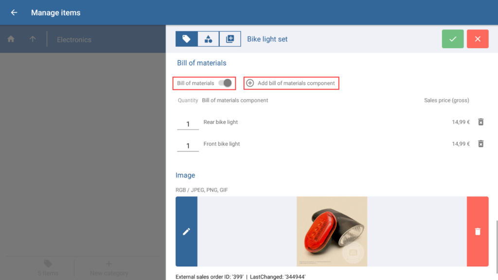 Note for users of JTL-POS ERPConnected: If you manage your items in JTL-Wawi, any corresponding BOMs will be managed in JTL-Wawi too. Read more here: Creating bills of materials.