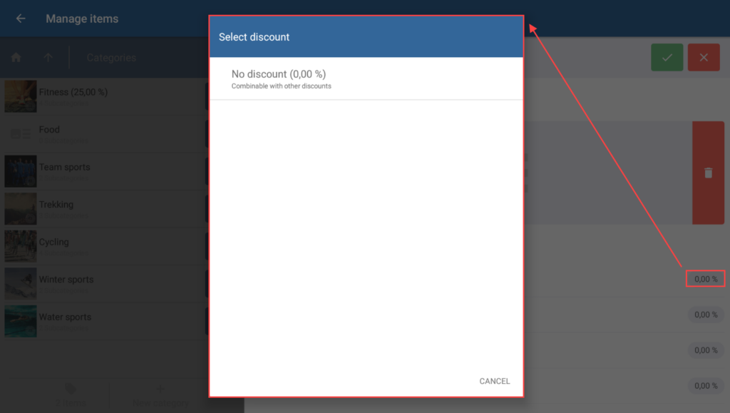 - Optional: To create a category for special offers, select a discount from the drop-down list.