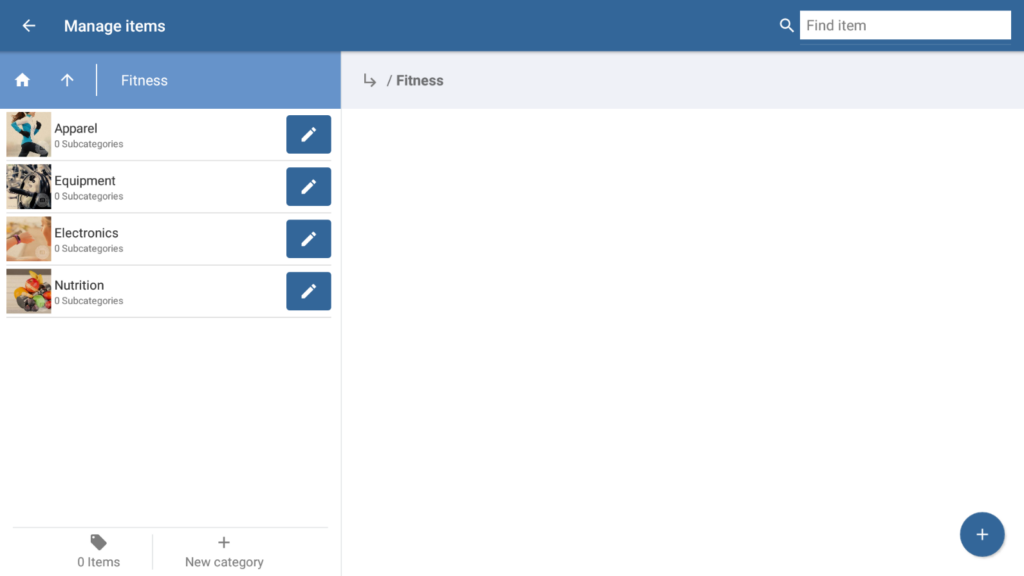The category will now be displayed under the parent category in the item management. Tap on the parent category to view its subcategories. You can also add additional subcategories to any subcategory.