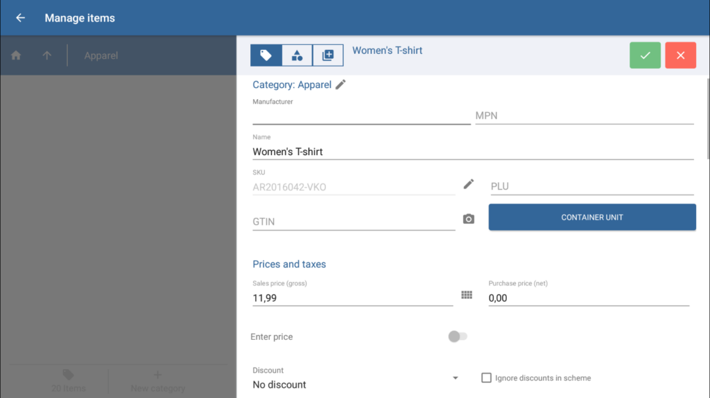 - Go to the JTL-POS menu and open Items. The dialogue box Manage items opens.