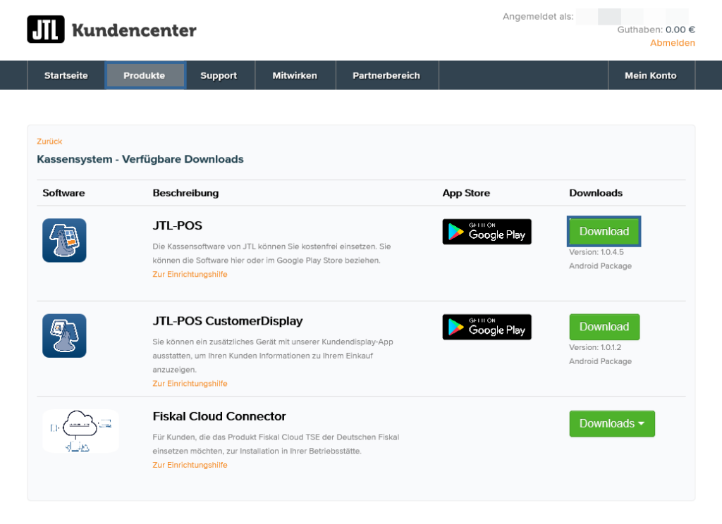 Yes. As a registered customer, you can download the installation file (Android APK) for JTL-POS from the JTL-Customer Centre under Produkte (Products) > Kassensystem (Point of sale system) > Download.