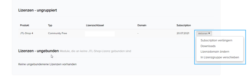 You can then find the licence under Ungruppierte Lizenzen (Ungrouped licences). You will also receive an email.
