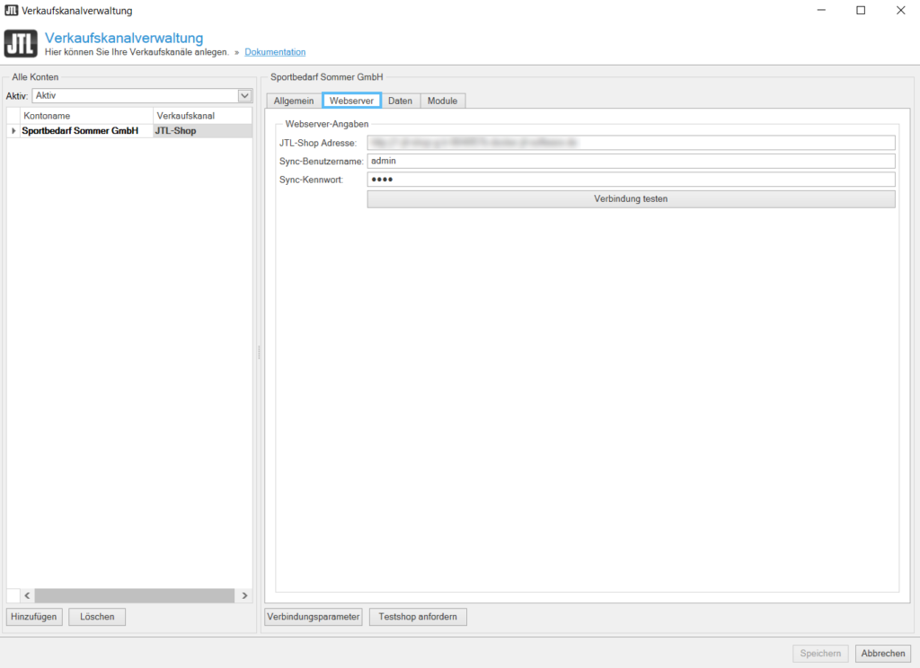 Test connection: Once you completed the web server information, you need to test the connection. With JTL-Connector, the button can only be activated after a successful test.