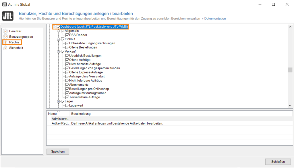 You can also manage the rights for the dashboard under Admin > Users/Rights > Rights.