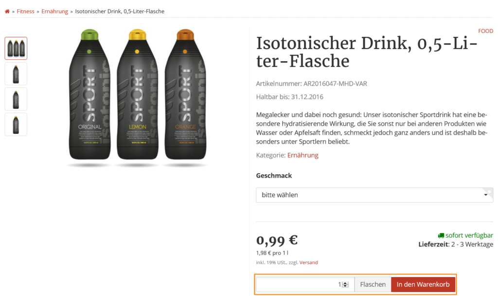 In JTL-Wawi, sales units only serve as additional information for customers. You can use them to tell your customer that if they increase the quantity of an item, more bottles or separate units of this item will be put in the basket. Sales units do not directly affect the price and do not have an impact on the base price.