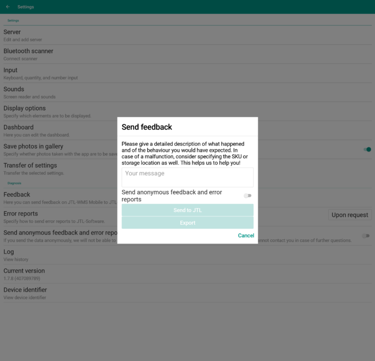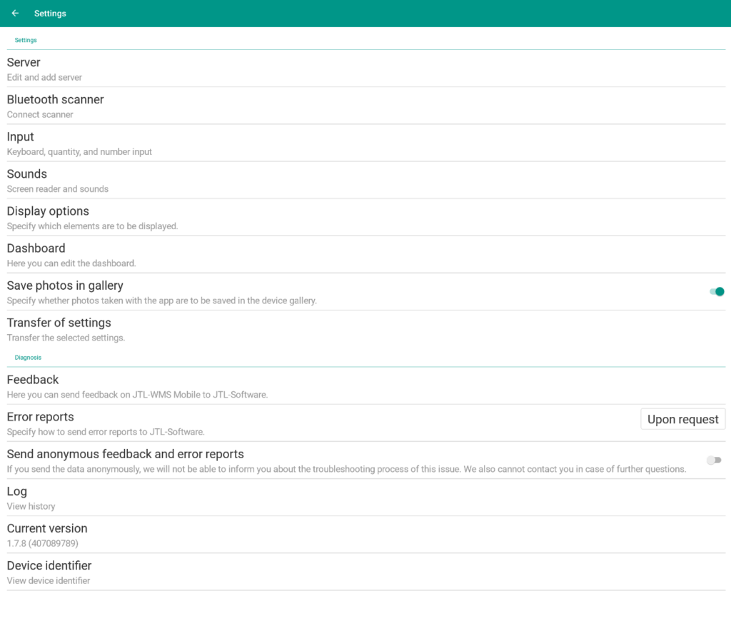 Here you can see which version of JTL-WMS Mobile App you are using.
