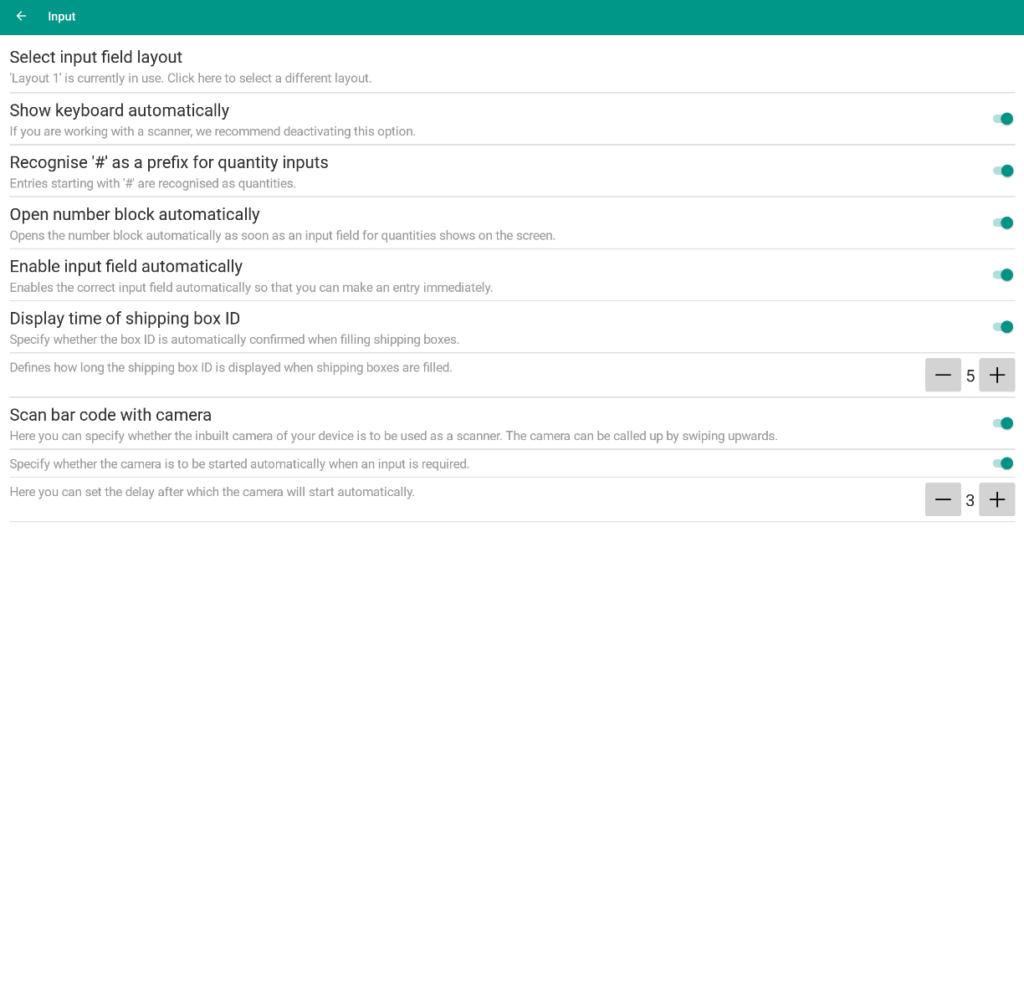 Select input field layout: The layout affects how the user interface is displayed and which functions are active. You can choose from three layouts. By default, Layout 1 is active.