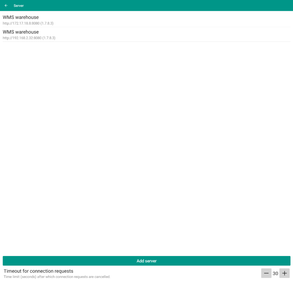 Here you get an overview of your Mobile Servers that you can connect to. You can add more servers to the list via Add server. With the – and + buttons, you can set the time in seconds until the connection request is cancelled.