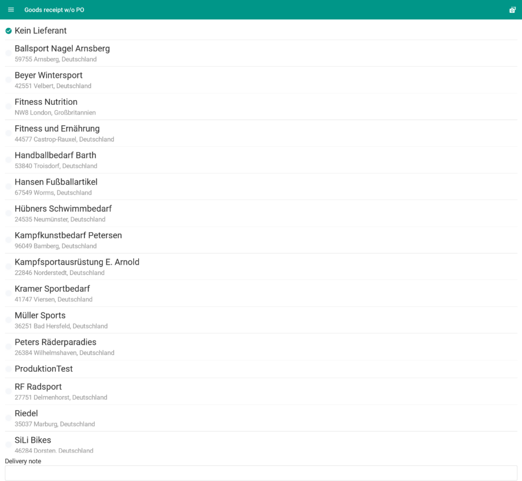 - If you know the supplier and have created a profile in JTL-Wawi, you can select them from the list. If you do not know the supplier, you can also choose No supplier. Optional: Scan the delivery note.