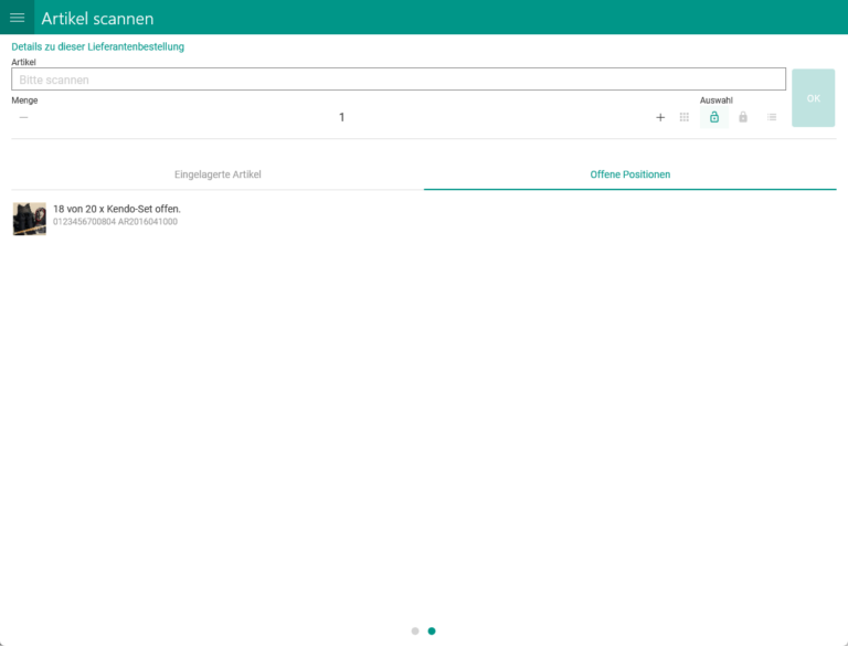 - Once you have scanned all items, you can proceed with the next purchase order, or store the items from the goods receipt location in the storage locations.