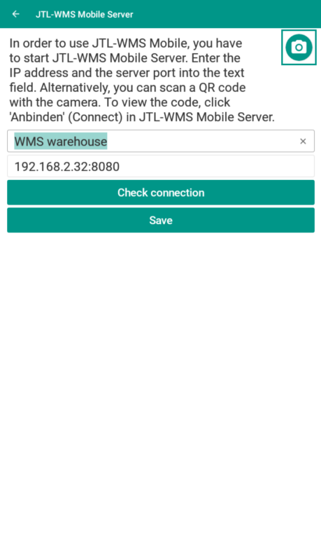 As an alternative to the usual registration process, you can also connect your JTL-WMS Mobile Server via a QR code.