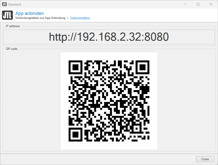 - In the Binding App dialogue box is a QR code with which you can connect your device directly to the Mobile Server.