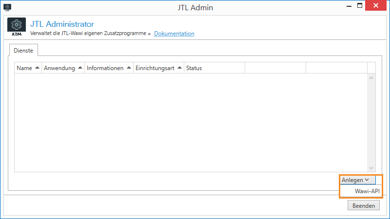 Hinweis: Vor JTL-Wawi-Version 1.10.12 wird keine Desktop-Verknüpfung für JTL-Administrator erstellt. Starte das Programm in diesem Fall aus dem Installationsordner.