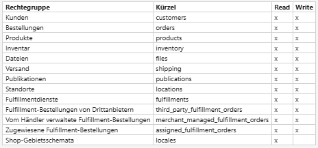 - Aktivieren Sie die in der Tabelle aufgeführten Berechtigungen, damit JTL-Wawi die jeweiligen Bereiche über JTL-Connector pflegen kann.