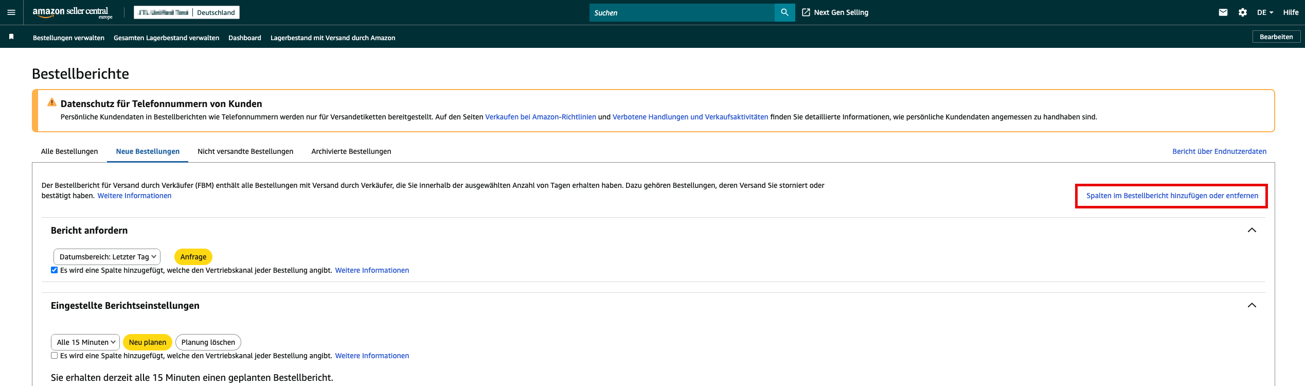 Standardmäßig enthalten die Bestellberichte von Amazon nicht alle Spalten, die Sie benötigen, um Amazon Business-Bestellungen zu bearbeiten. Aktivieren Sie deshalb zusätzliche Spalten in den Bestellberichten von Amazon.