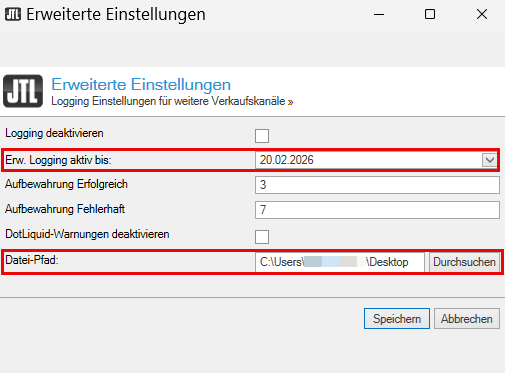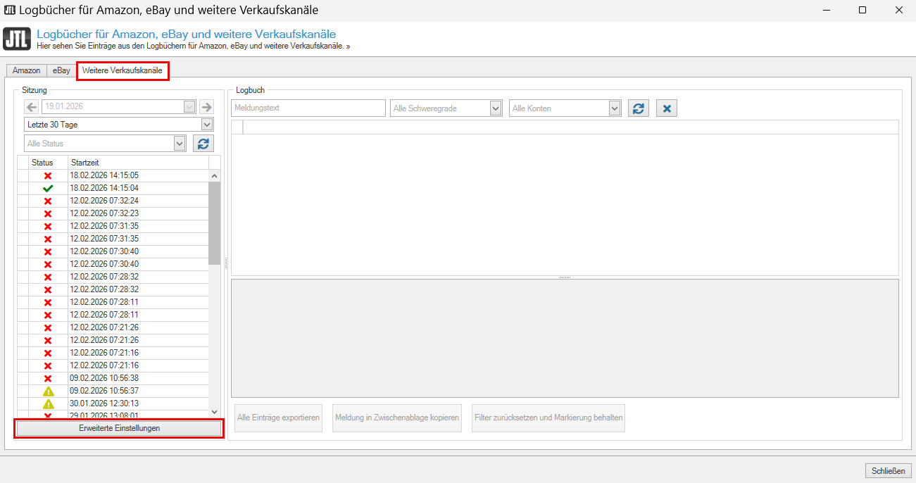 Erweitertes Logging für die weiteren Verkaufskanäle aktivieren