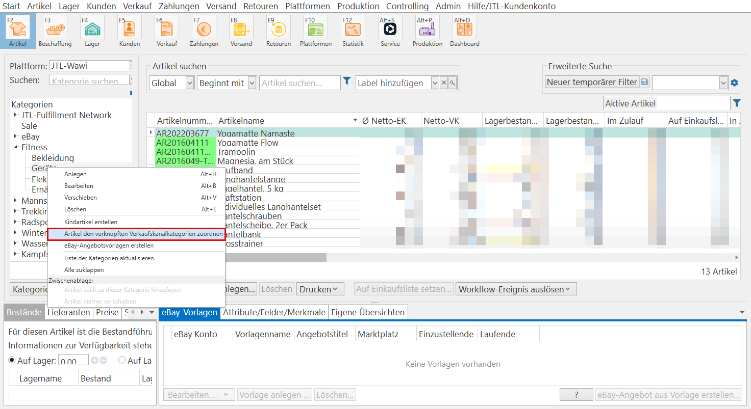 JTL-Wawi-Kategorien eine Verkaufskanalkategorie zuordnen