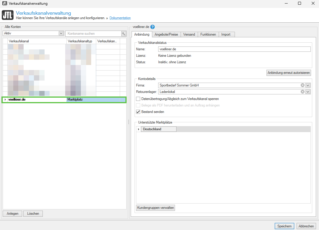 1. Öffnen Sie über das Menü Plattformen > Verkaufskanäle das Dialogfenster Verkaufskanalverwaltung.