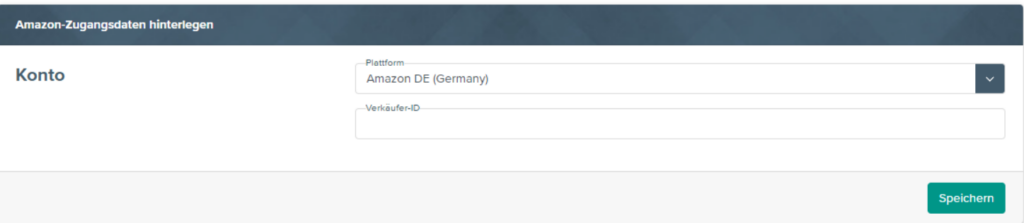 - Wählen Sie unter Plattform aus, für welchen Amazon-Marktplatz Sie die Zugangsdaten eingeben möchten. Geben Sie anschließend Ihre Amazon Verkäufer-ID ein.