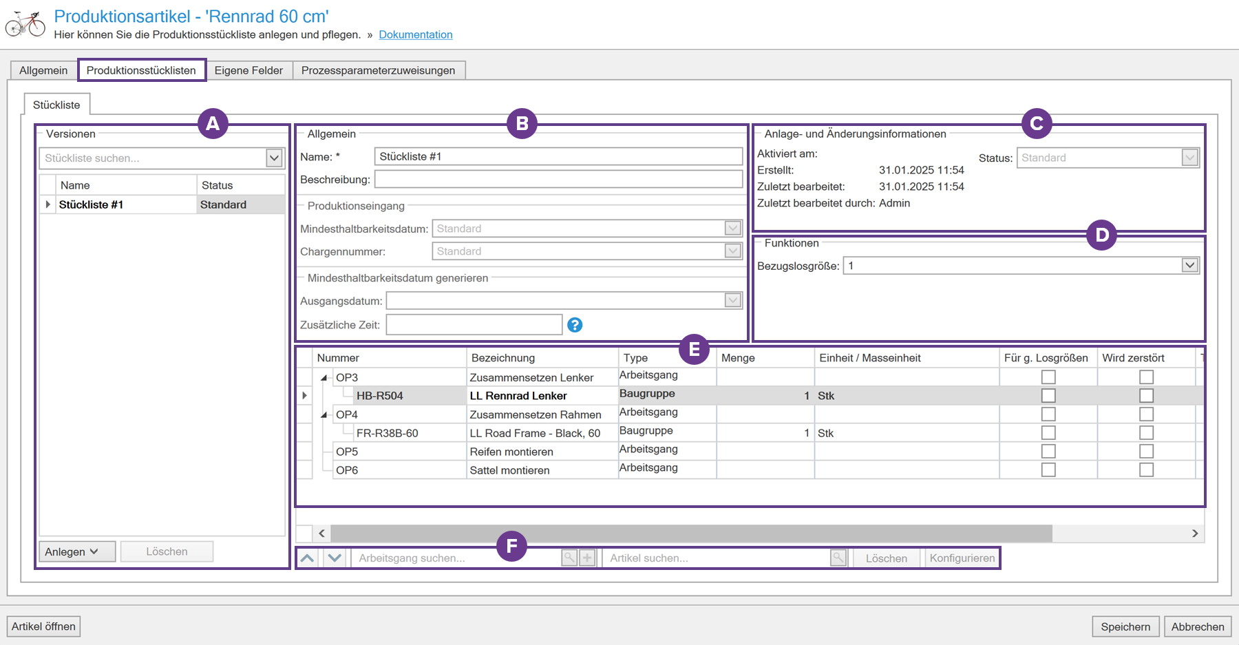 Name: Geben Sie der Produktionsstückliste in diesem Feld einen Namen.