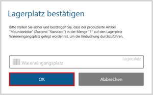- Bestätigen Sie den Lagerplatz in der Abfrage mit OK.