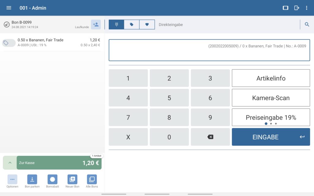 JTL-POS berechnet den Positionspreis anhand der erfassten Menge. Beachten Sie, dass JTL-POS Mengen immer mit drei Nachkommastellen interpretiert.