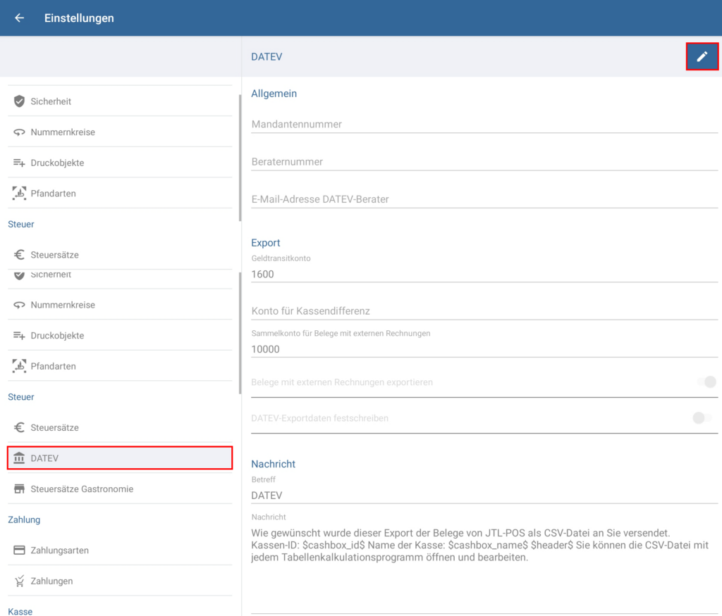 DATEV-Einstellungen verwalten