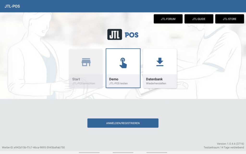 Ja, Sie können JTL-POS für einen Zeitraum von 14 Tagen kostenfrei und mit vollem Funktionsumfang verwenden. Anschließend ist eine Registrierung im JTL-Kundencenter erforderlich. Der Funktionsumfang bezieht sich auf JTL-POS, verfügbare Erweiterungen sind ausgeschlossen und setzen eine Buchung im JTL-Kundencenter voraus.