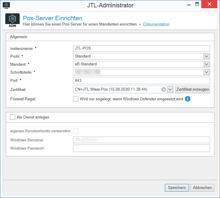 Folgen Sie den nächsten Schritten, um mit Hilfe des JTL-Administrators den JTL-POS-Server einzurichten und zu starten.