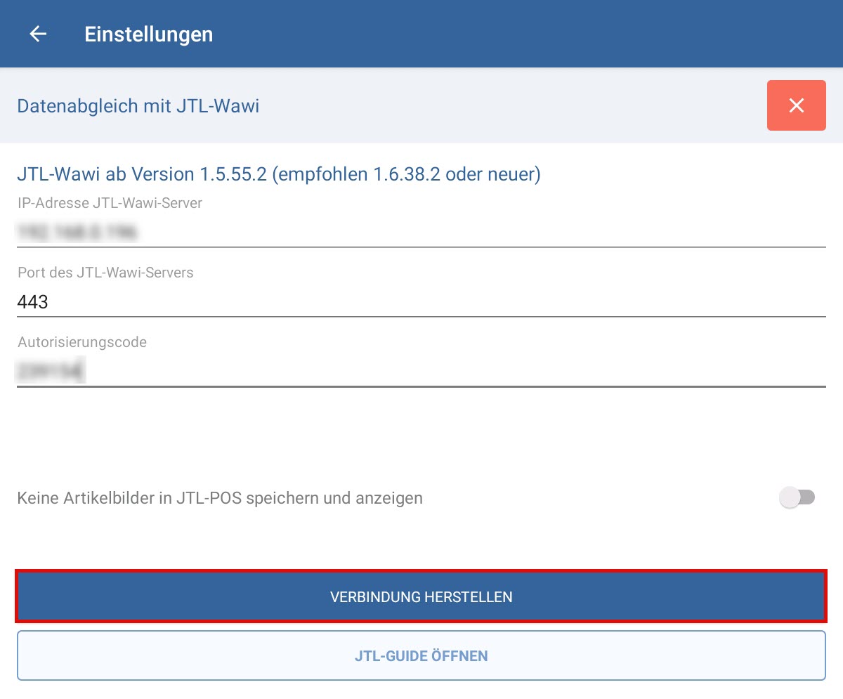 Sie haben erfolgreich JTL-POS mit JTL-Wawi verbunden.