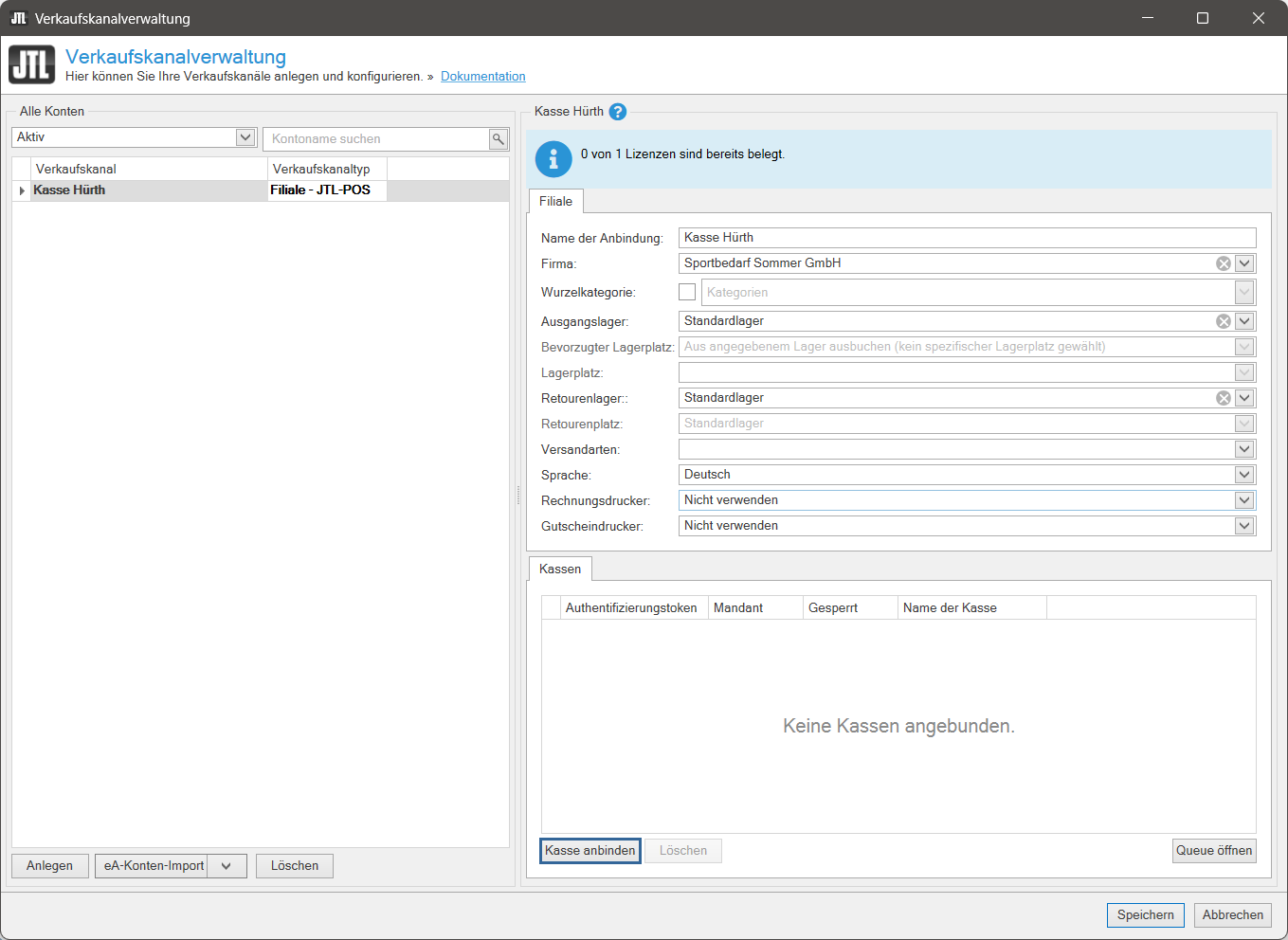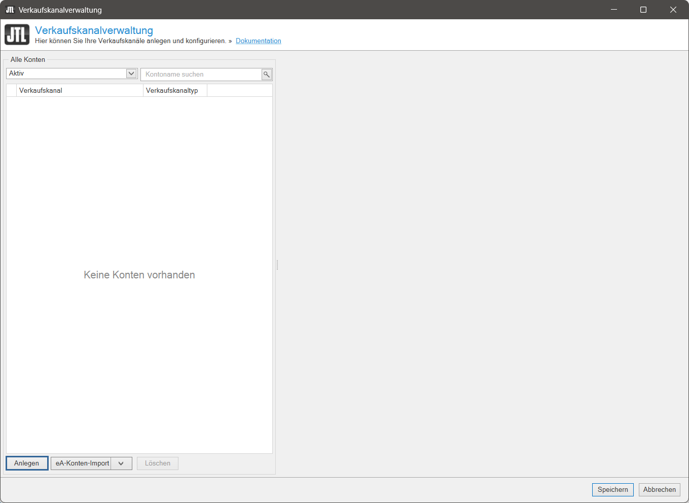 - Sie gelangen zurück zum Dialogfenster Verkaufskanalverwaltung. Klicken Sie auf die Schaltfläche Speichern.