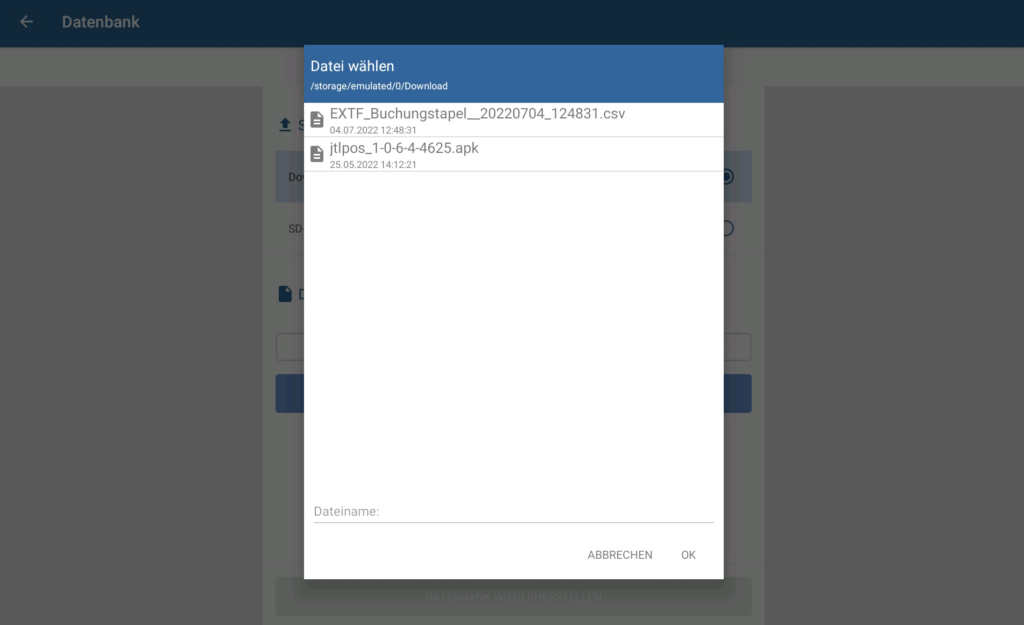 3. Tippen Sie auf die Schaltfläche Datei wählen. Das Dialogfenster Datei wählen öffnet sich.