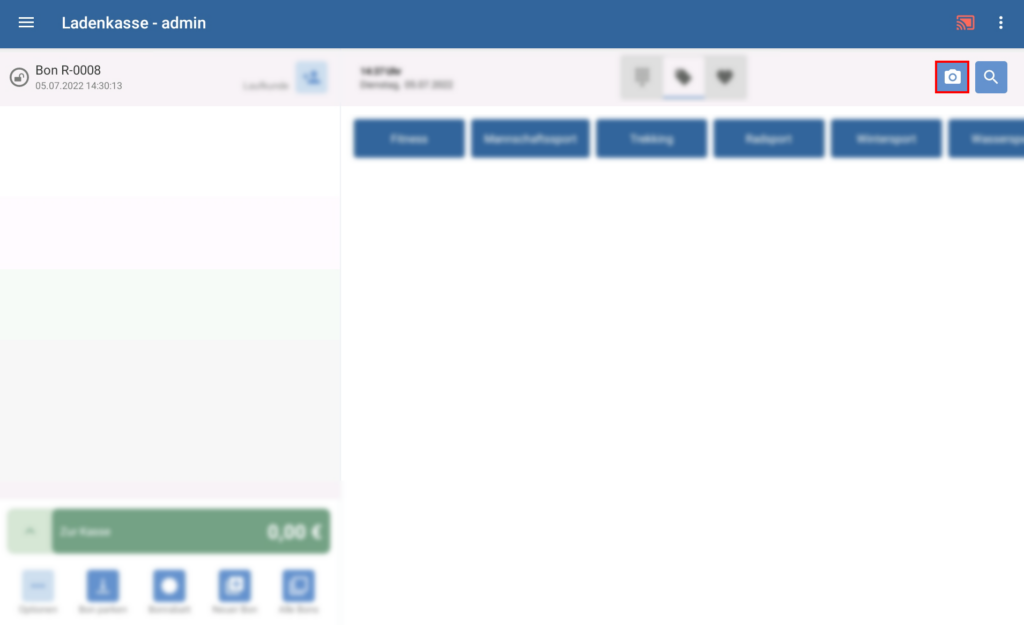 Wenn Ihre Artikel über Barcodes verfügen und Ihr Gerät, auf dem Sie JTL-POS betreiben, eine integrierte Kamera besitzt, können Sie den Barcode über die Kamera scannen.