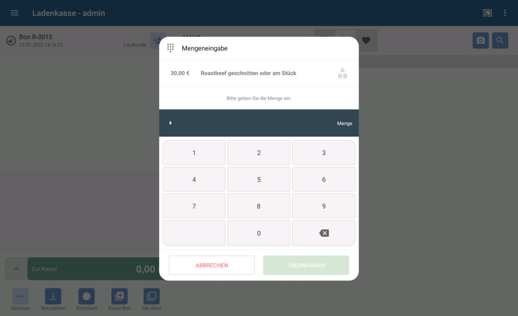 Wenn Sie diesen Artikel jetzt auf einen Bon setzen, steht Ihnen die Mengenabfrage zur Verfügung: