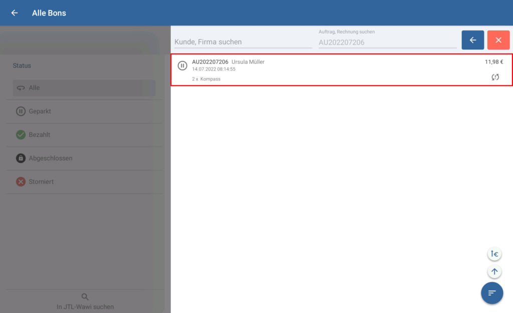 Ein Kunde möchte einen Auftrag, den Sie in JTL-Wawi angelegt haben, über JTL-POS bezahlen, weil er beispielsweise Ware über Ihren Onlineshop zur Abholung bestellt hat.