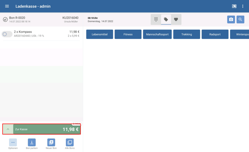 - Tippen Sie auf die Schaltfläche Zur Kasse, um den Auftrag zu kassieren. Lesen Sie mehr zum Thema hier: Zahlungen.