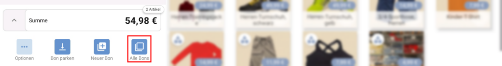Anstelle von einzelnen Positionen können Sie auch einen gesamten Bon stornieren. Das ist beispielsweise sinnvoll, wenn Ihr Kunde noch vor der Zahlung vom Kauf zurücktritt.