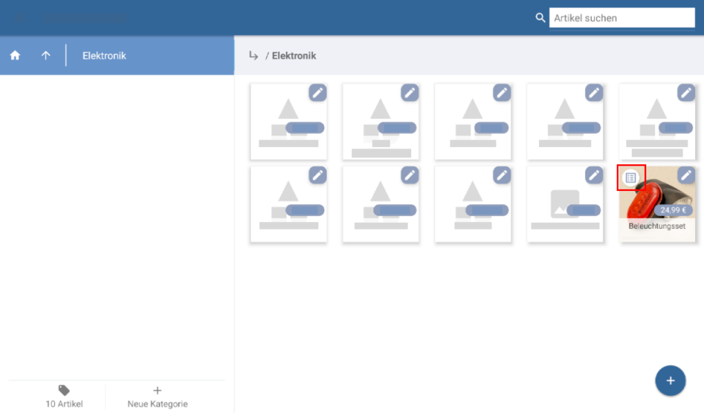 - Wechseln Sie in die Kategorie, in der sich Ihr neuer Artikel befinden soll.